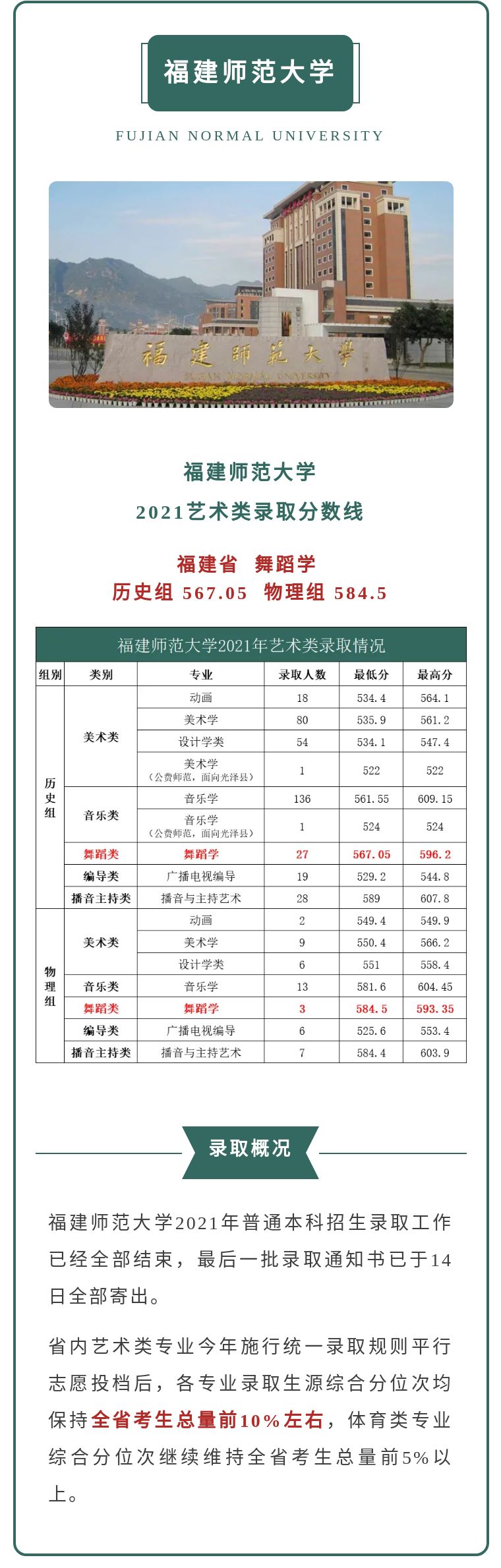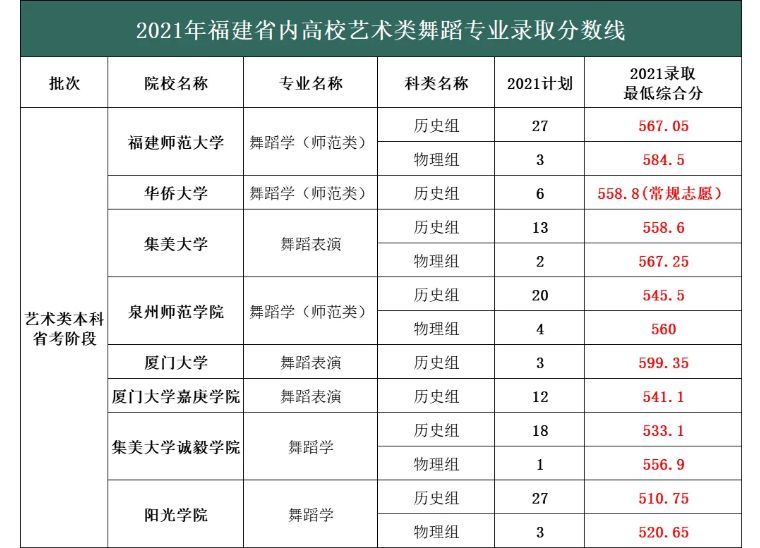 2021年,福建省內(nèi)8所招收舞蹈專(zhuān)業(yè)院校都已完成今年的招生錄取,更低分?jǐn)?shù)線也已全部出爐。