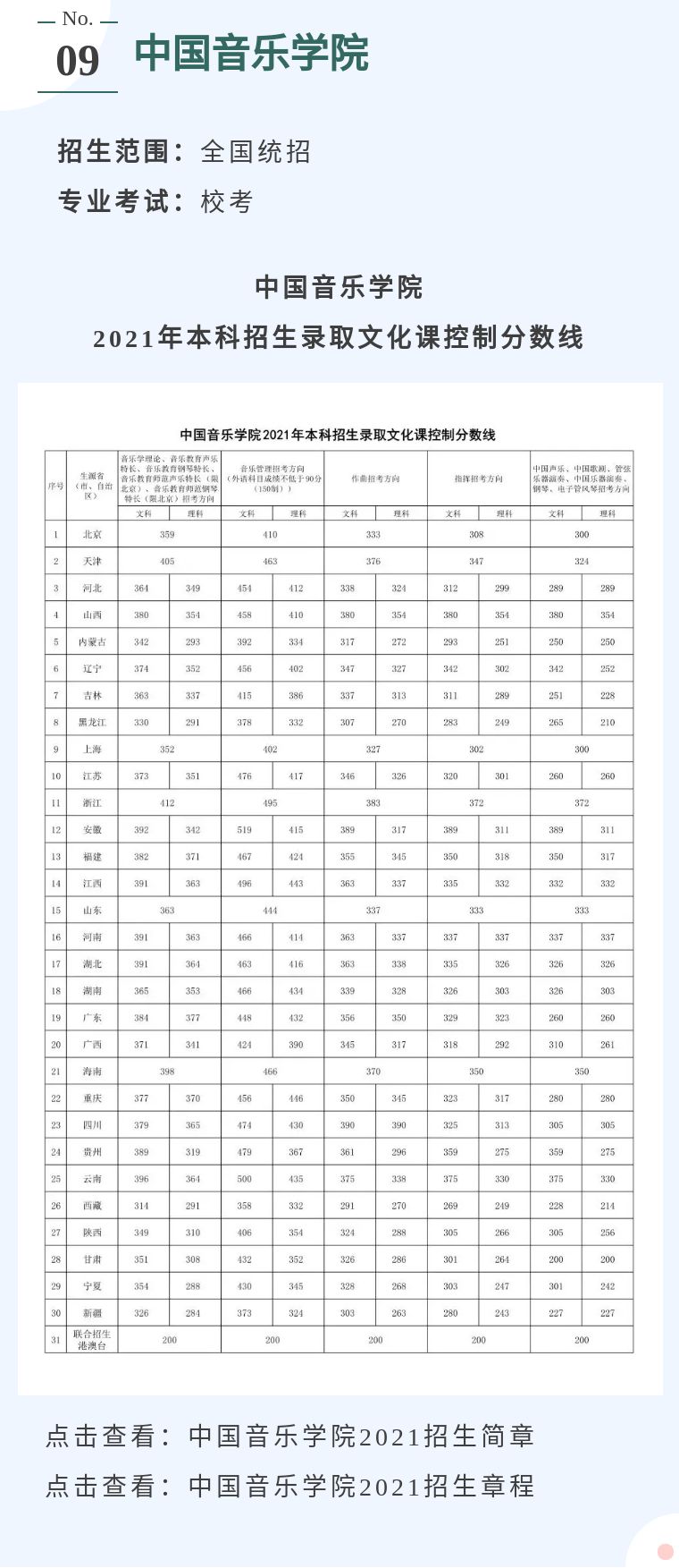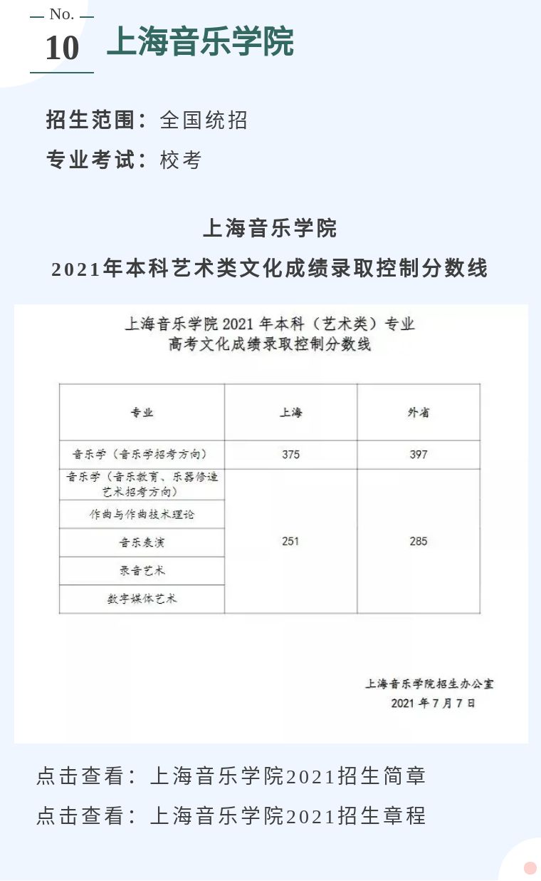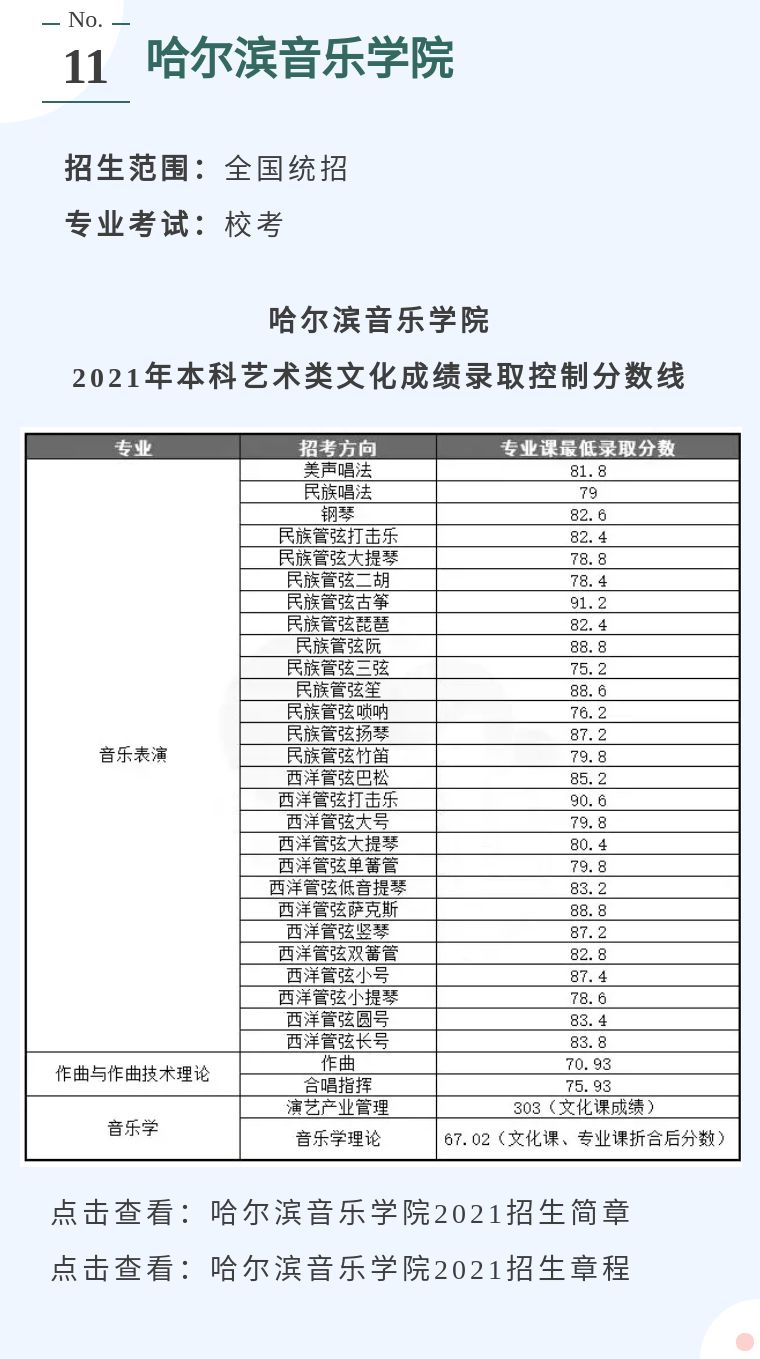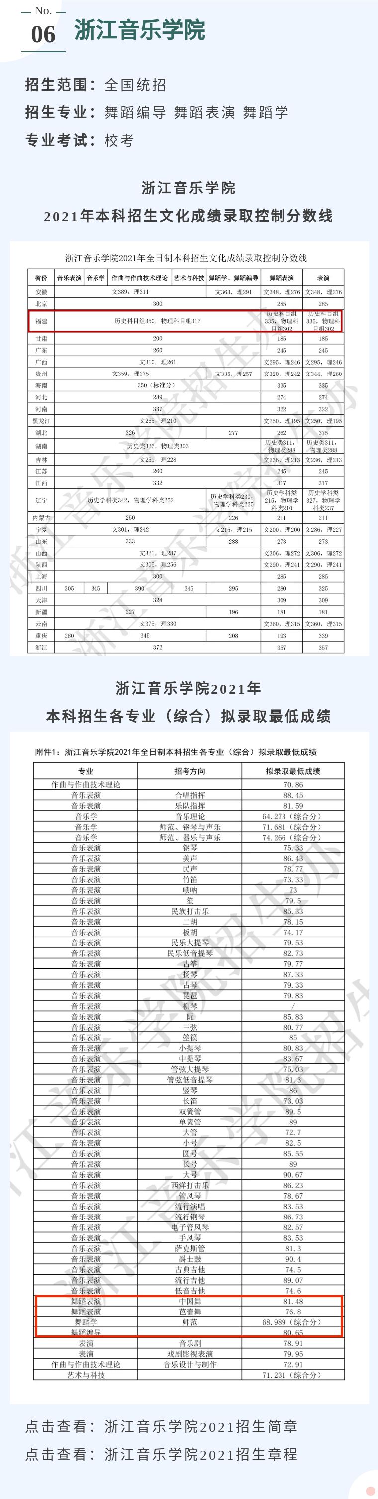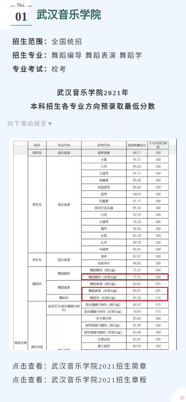 每年除了北舞、民大、六大藝術(shù)學(xué)院,音樂學(xué)院也都是舞蹈生的報考熱門! 目前,全國共有11所音樂學(xué)院。2021年的高考招生中,7所院校招收舞蹈類專業(yè)。這些學(xué)校中絕大多數(shù)須參加校考,專業(yè)文化雙過線才能成功錄取。 11所音樂學(xué)院2021年文化錄取分數(shù)線,小田田為藝考生們準備好啦,一起了解一下,建議收藏備用!